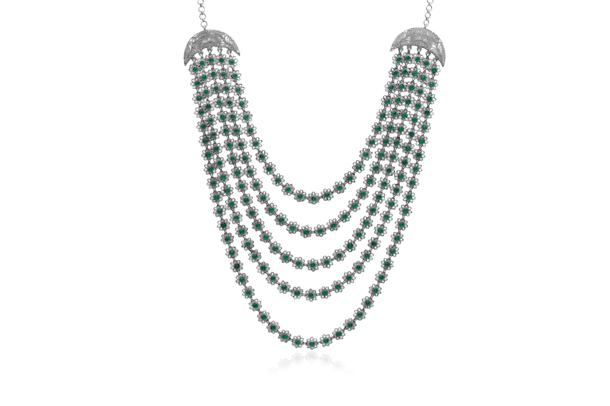 Floral Statement Silver Necklace