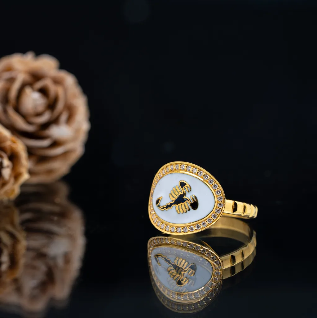 Discover the charm of this 22k gold finger ring flaunting an unique scorpion design. Ideal for festive and contemporary wear, this ring with its elaborate design enhances your attire, making you stand out in the crowd.