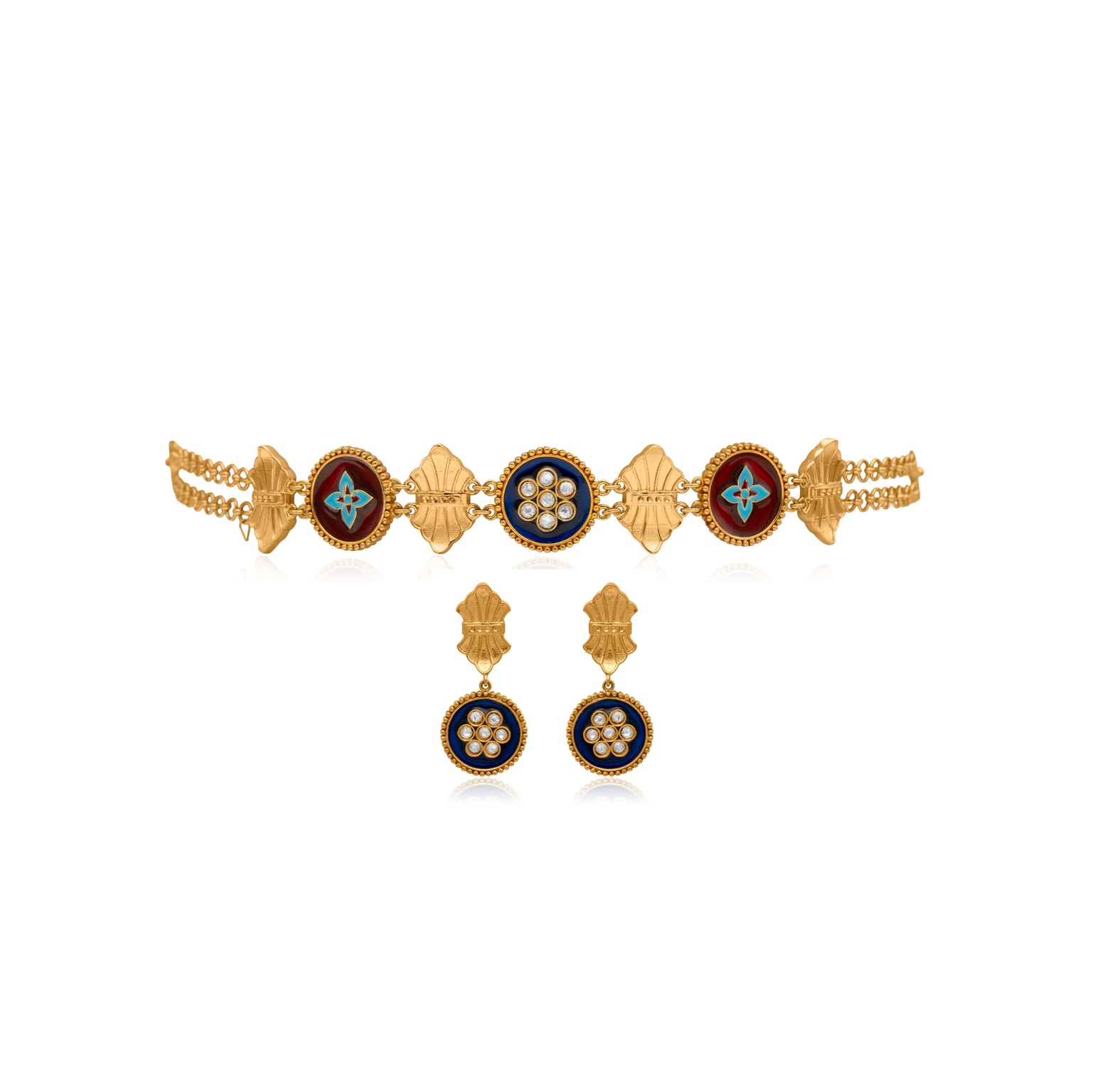 22k Geometric Gold Choker Necklace Set