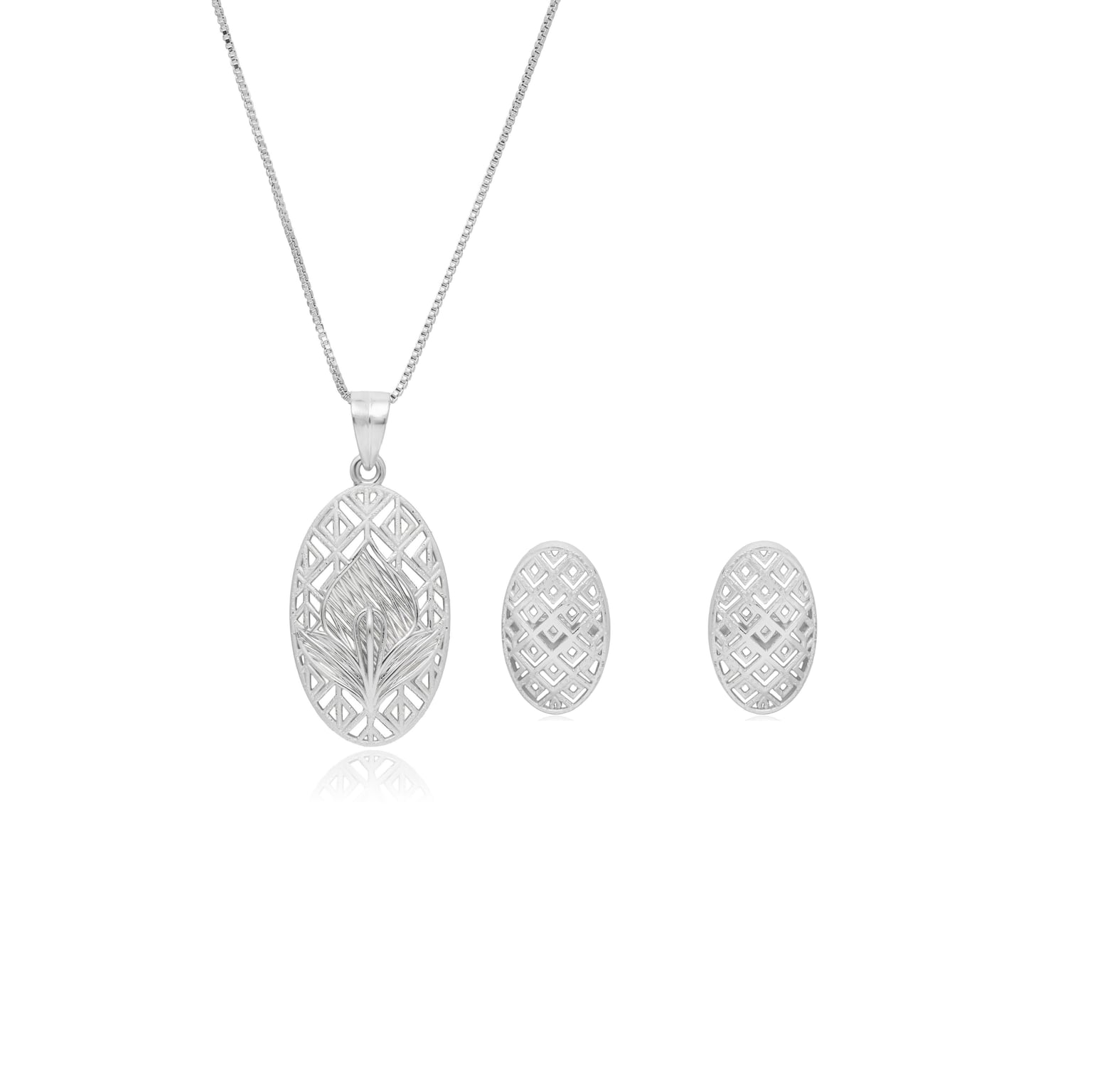 Oval Foliage Silver Pendant Set